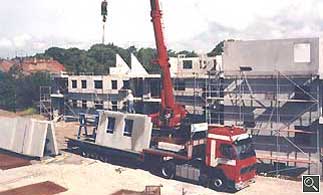 produziert, die jeweils geschoßhoch sind. In die Wandelemente können schon bei der Produktion